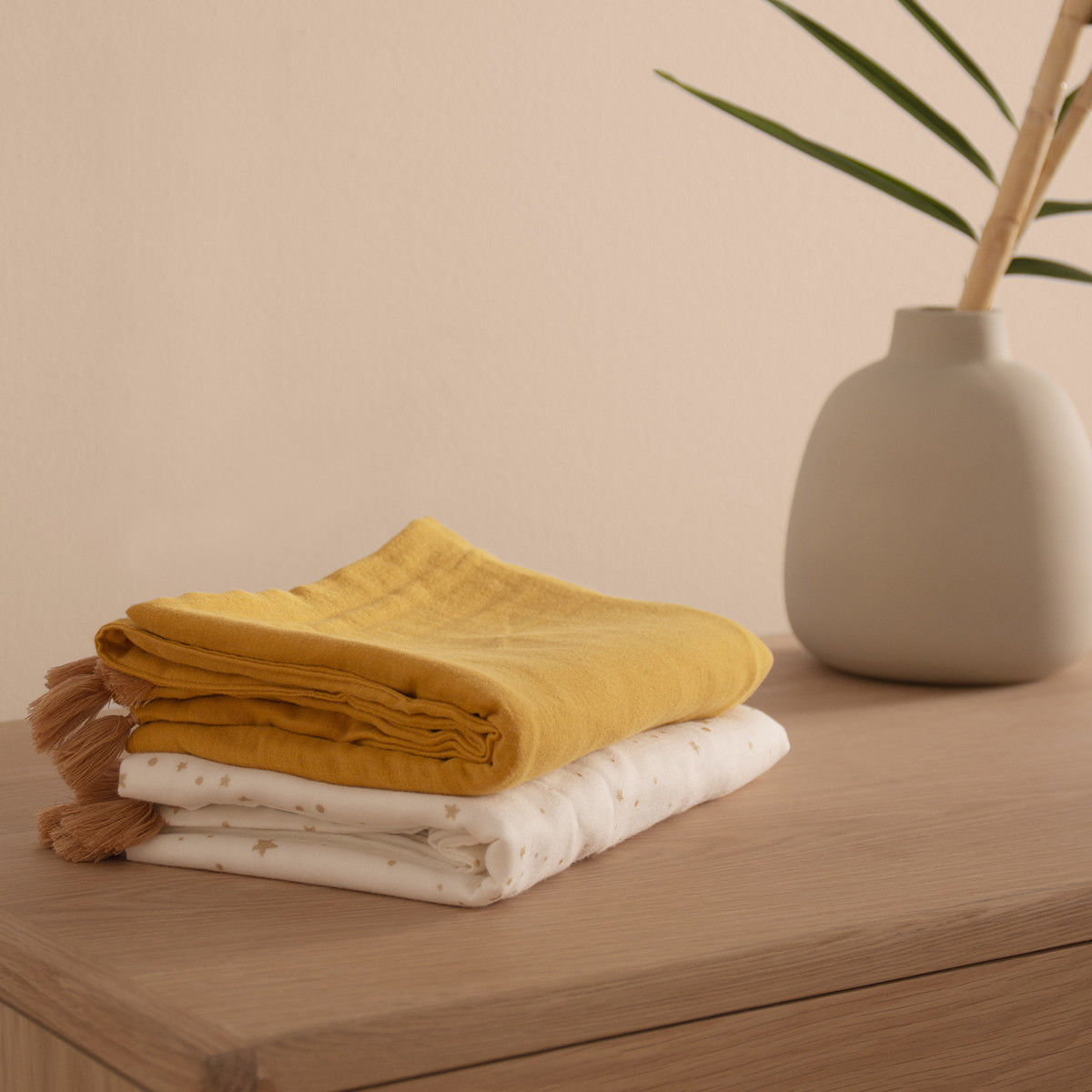 Lees verder >>Je kleintje slaapt heerlijk, dankzij de Treasure zomerdeken van Nobodinoz. Deze heerlijke, lichte deken is gemaakt van biokatoenen dubbele mousseline, perfect voor de zomernamiddag dutjes of wandelingen. De dromerige tinten en elegante pompons helpen je baby in totale rust te laten slapen. Kies je voor naturel met kleine oker stipjes, uitgesproken okergeel of dromerig roze?